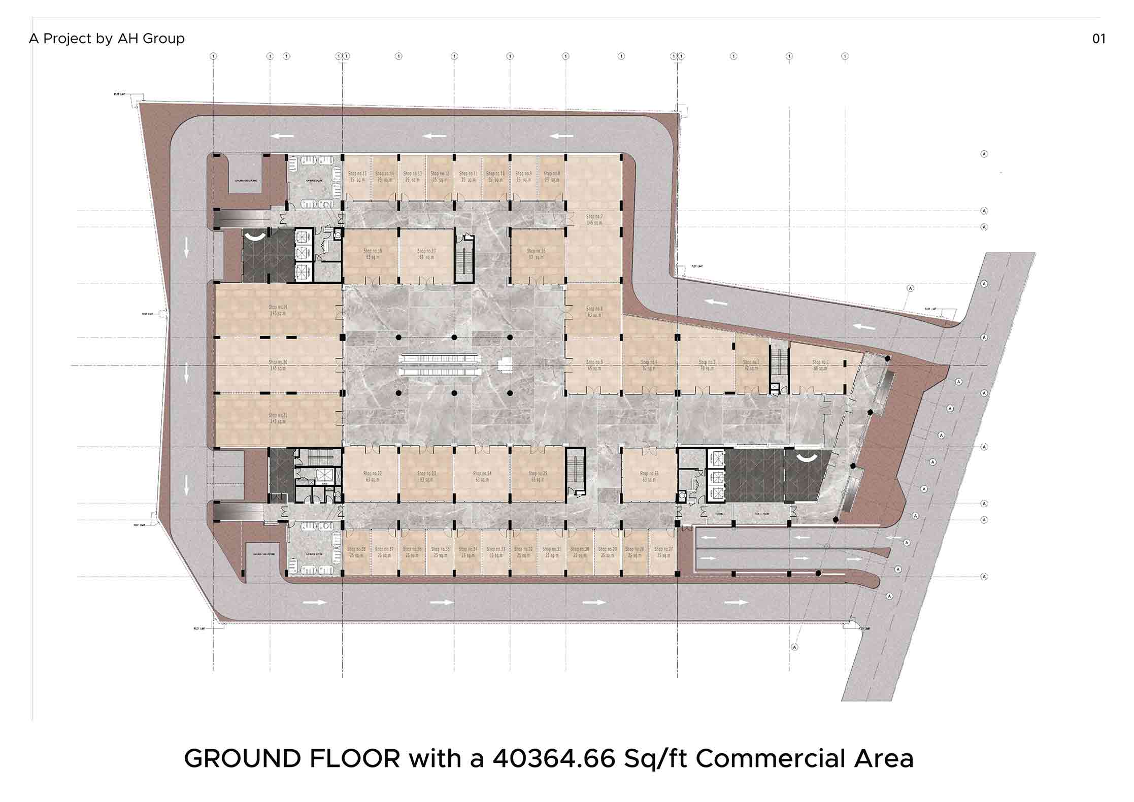 Spanning over 16 kanal (approximately 8093 square yards) of land, AH Tower boasts a captivating design that harmoniously integrating residential and commercial spaces. The residential area is dedicated to up to 19 floors, where residents can experience an exceptional living style enriched with comfort and world-class amenities. The tower offers a range of well-designed apartments, providing a luxurious living experience for individuals and families alike.