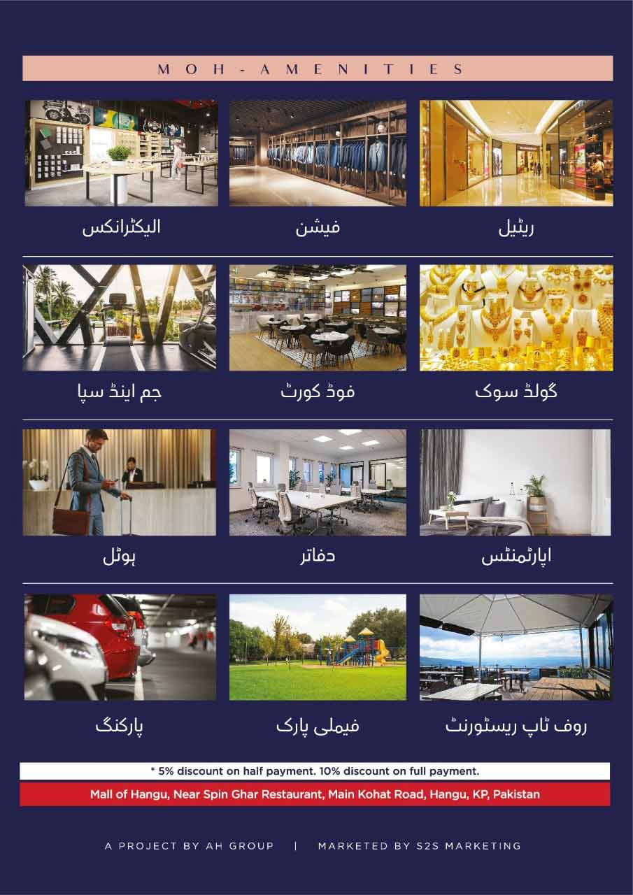 The Mall of Hangu is a haven of convenience and accessibility aimed at enhancing and enriching the lifestyles of the people of Hangu. As the first-ever Mall in the region, it presents a once-in-a-lifetime opportunity, guaranteeing a hassle-free lifestyle. The Mall comprises two towers, one dedicated to rental apartments and the other functioning as a hotel, ensuring diverse accommodation options. Every meticulous detail, from stylish flooring to spacious balconies and state-of-the-art shops in the commercial area, contributes to its captivating appeal.